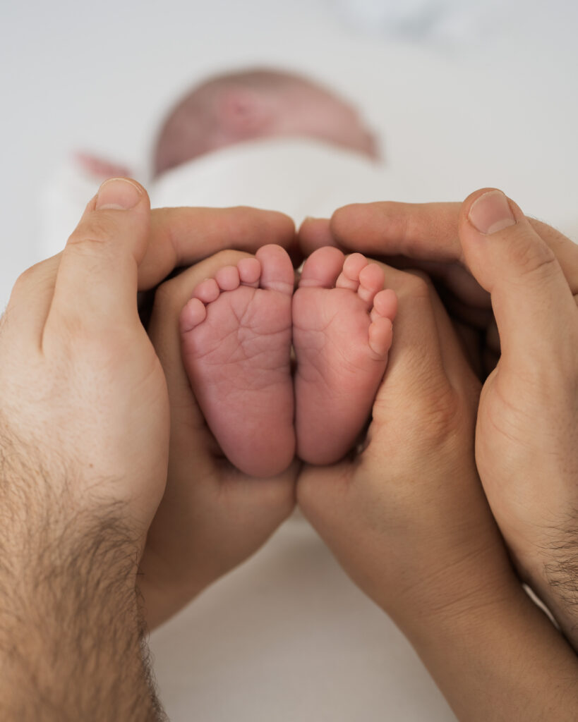 – Baby’s hands and feet with the parents